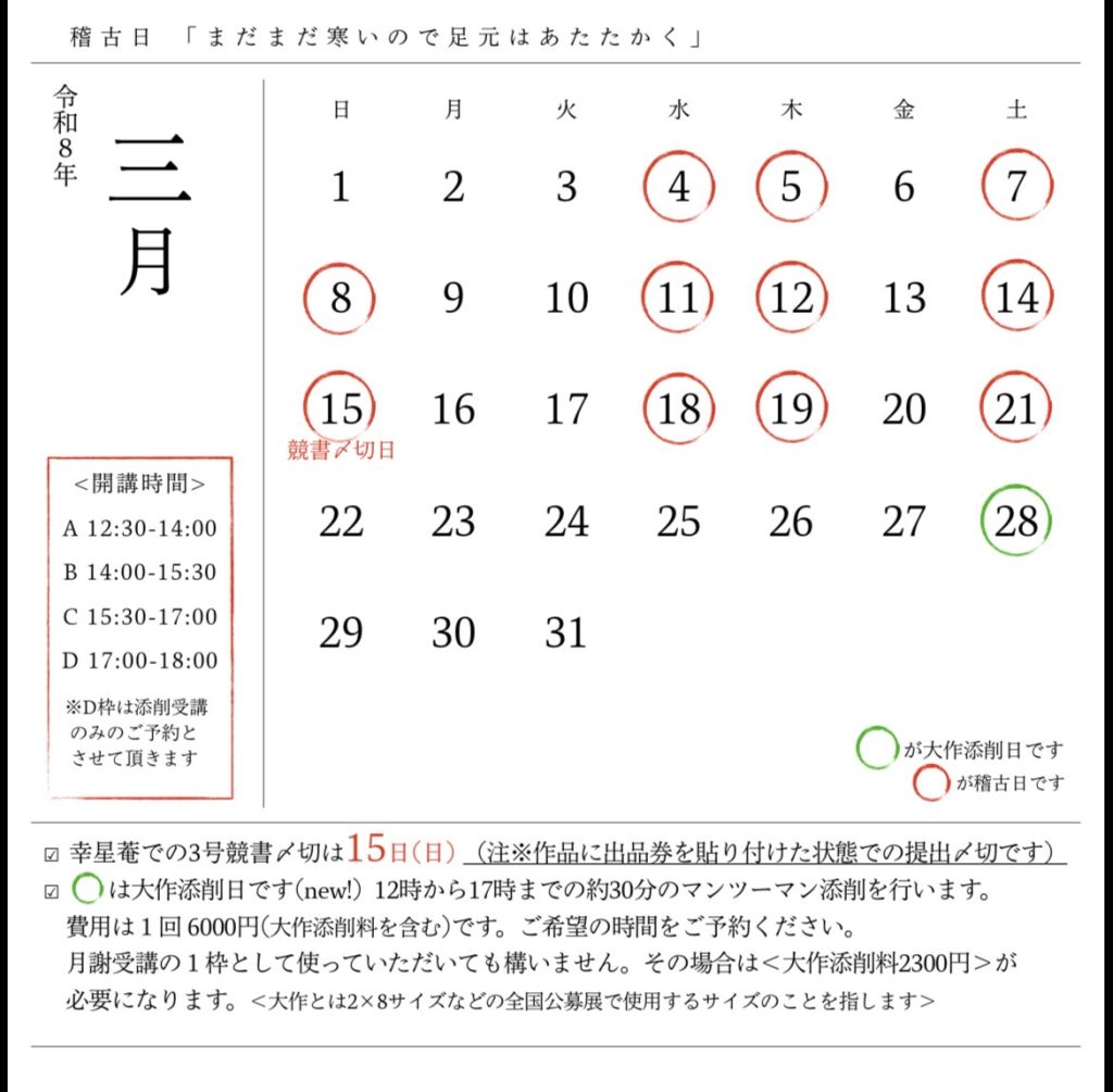 2026年3月の稽古日